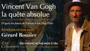 Au fil des tableaux qui se succèdent, Van Gogh parle. Il se raconte dans les lettres qu’il écrit à son frère Théo. À travers elles, il lance son appel, crie sa faim de Dieu, sa soif d’absolu, l’exclusion, la solitude, le désir de créer, et son amour infini, jusqu’à la brisure, jusqu’à la folie, jusqu’à la fin.